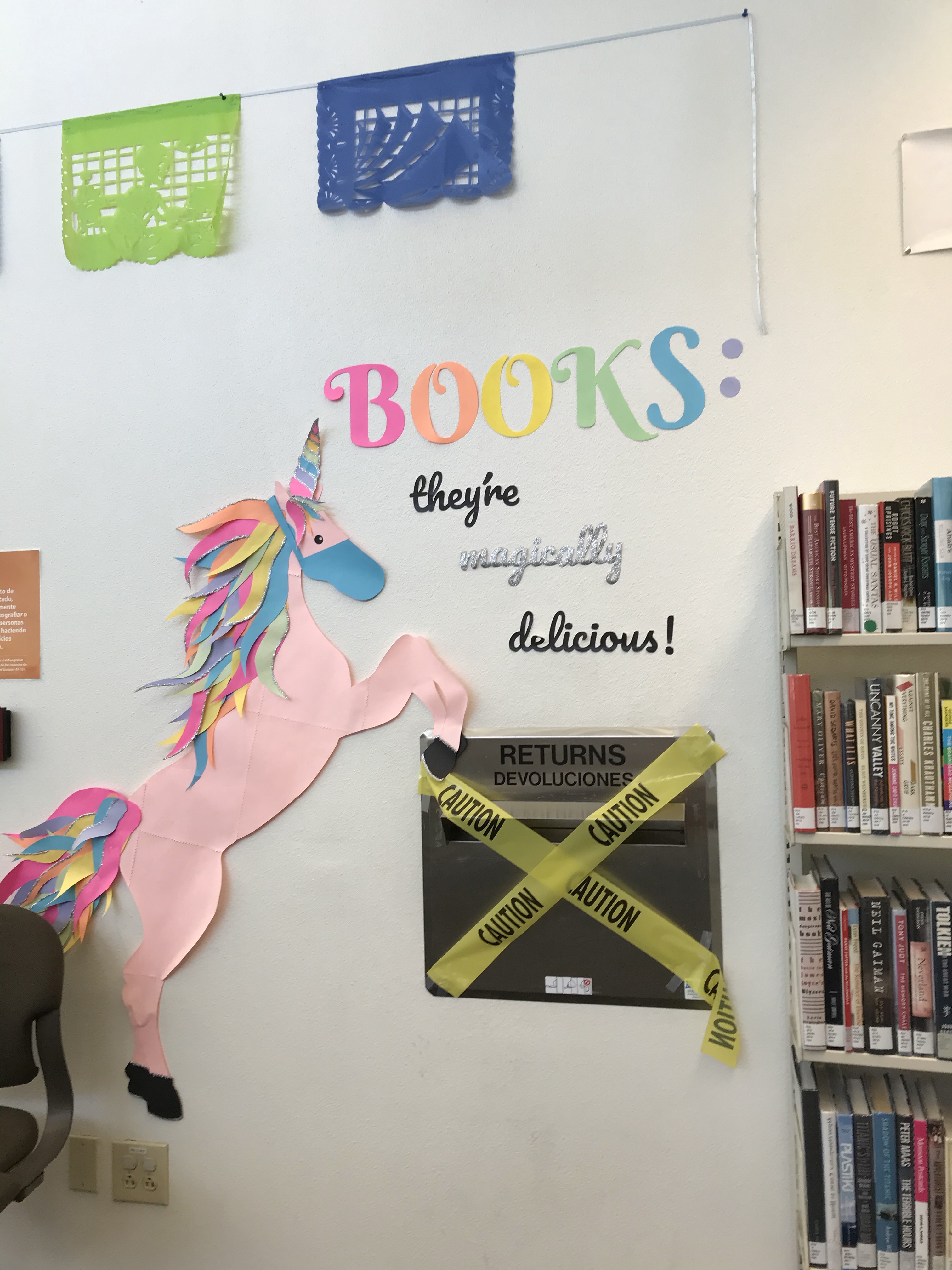 At least the computer sessions are limited to a half hour per day. And everyone has to have a mask on to enter and have a temp of no more than 100.4. If you don’t have a mask, the library has one for you. And even our displays are willing to mask up.