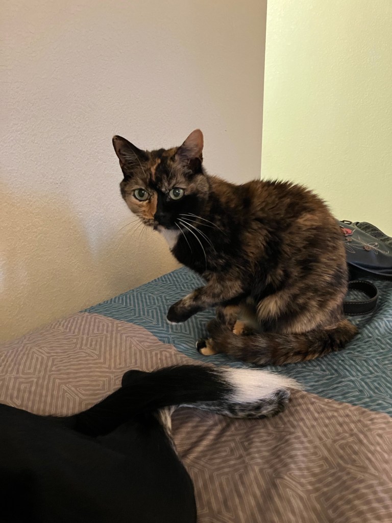 Our new place has a beautiful bay window, that the dog thinks is pretty neat. But she shouldn’t be in it and that’s a new challenge. It’s fine for the cat, but not for her. (The cat did great on the road trip. She yowled a bit at first, but then got into the rhythm of the road.)